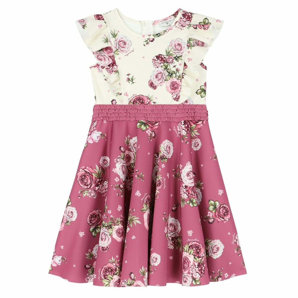 Monnalisa Girls Ivory Pink Printed Dress Junior Couture Uae